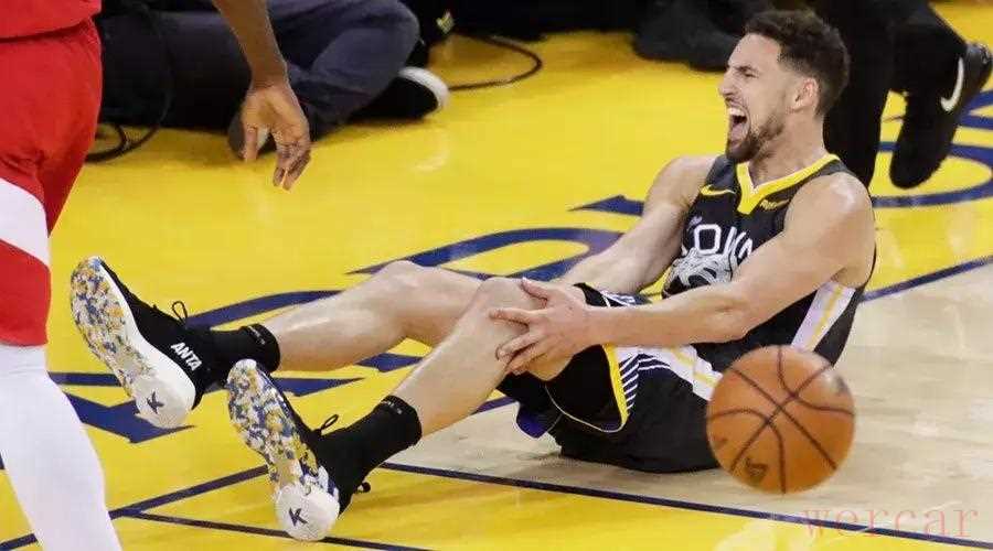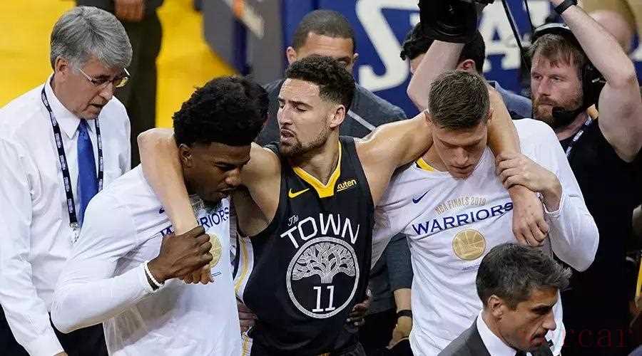 当克莱倒地的时候,库里在场地的另外一段,蹲在那里,摇着头,用双手捶打自己的头。他不敢相信,无法接受命运是这么残酷。杜兰特在三天前刚刚跟腱断裂,现在轮到了克莱。克莱受伤的样子,是那么恐怖。如果是膝盖十字韧带断裂,对一名运动员的毁灭性不亚于跟腱断裂,克莱需要像杜兰特一样,漫长的休养期。在这一刻,你甚至能想象当下个赛季揭开帷幕时,勇士会是怎样的阵容。