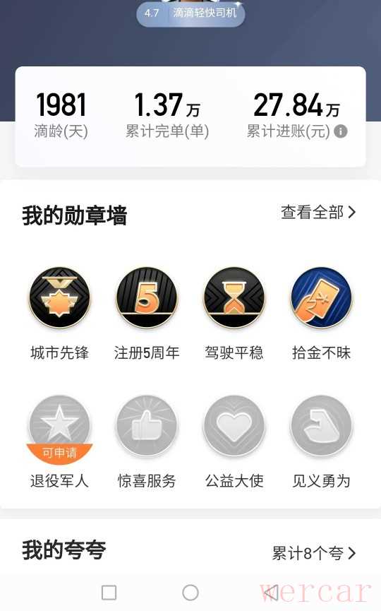 租车的成本很简单:租金2500元/月×12=30000,电费1500元/月×12=18000,合计48000元(注:有的月份会有波动,比如跑曹操专车时电费降低,运管扣车时租金减免,但总数是符合的,取整是为了方便计算)。第一年跑车就挣了10万元左右,18年在贵阳,一个月能挣到8000以上,加上当年我有失业金可以领,每个月妥妥的近万。虽然说不上很高的收入,但也很不错了,而且我没有玩儿命地干,不然一个月纯收入一万三四都没问题。。所以第一年很轻松,感觉找到了份好职业:租车有派单倾斜,滴滴的订单多、单价高、工作时间又自由,这些我都在微里有表述。