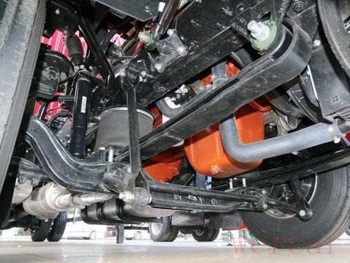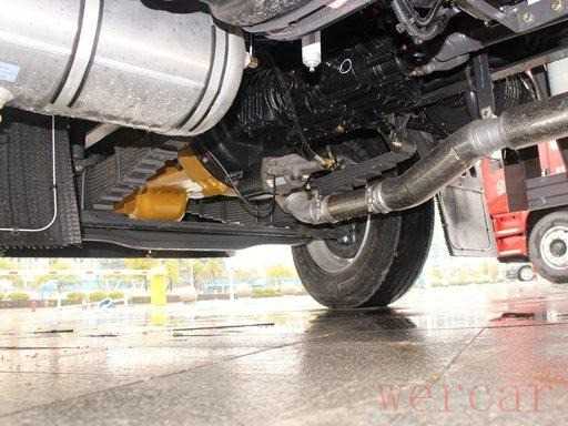 配备有六条型号为LLF01的玲珑轮胎,规格为275/80R22.5,这款轮胎适用于行驶在高等级公路上的全轮位,更适合在规格较高路面上行驶。车重7.905吨,可搭载长6800mm,宽2470mm仓栅式货箱。另外车配备了250L的铝合金油箱,续航能力相对较差。