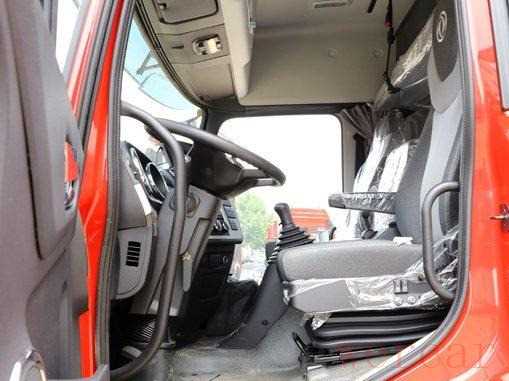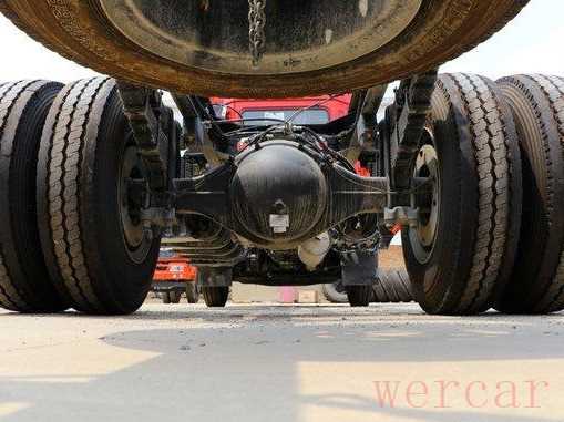 在动力方面,东风天锦KR搭载一台型号为ISD245 50的东风康明斯发动机,6.7L排量,最大功率245马力,最大扭矩950N.m,满足国五排放标准。与之匹配的是一台法士特8JS85E 8档变速箱,头档速比10.36,最高档速比0.8。前桥允许载荷为6500kg,后桥允许载荷达到11500kg,速比为4.33,底盘为前8后10+8钢板弹簧悬架结构,承载能力相对其他车型来说更加强劲,动力配置适合在山区等起伏路面行驶。
