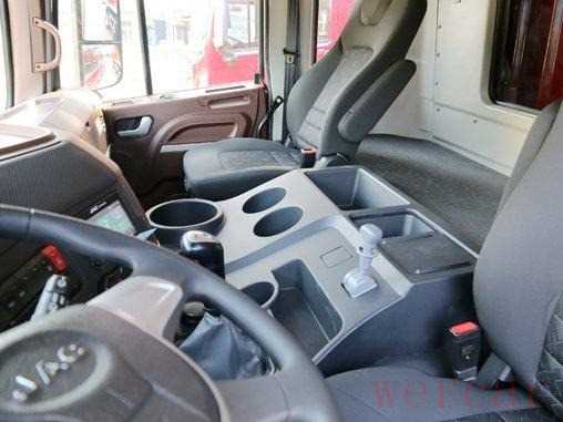四幅式方向盘造型较为独特,中间盾型镀铬装饰使得整体观感良好,双筒式仪表盘面积更大,行车电脑显示信息丰富,显示效果不错,给人以良好的视觉观感。座椅则采用一体式空气减震座椅,能够让驾驶员比较轻易地获得舒适的驾驶坐姿,减轻长途驾驶的疲劳程度。