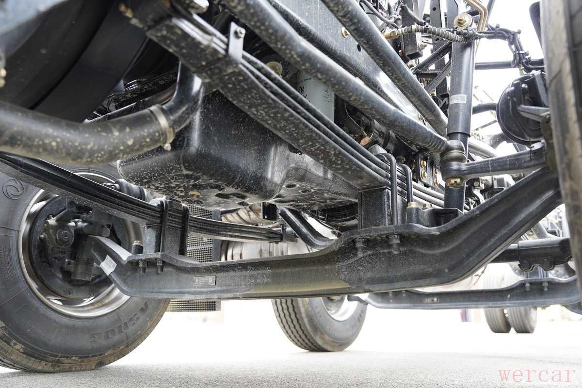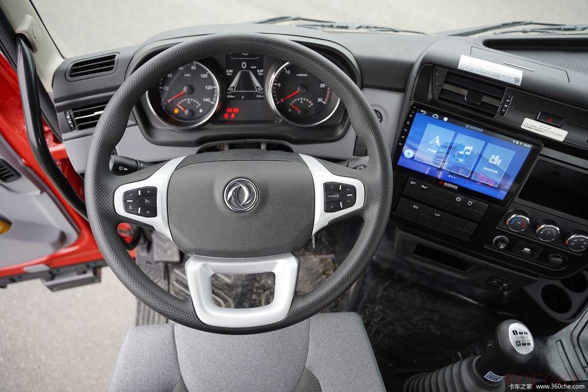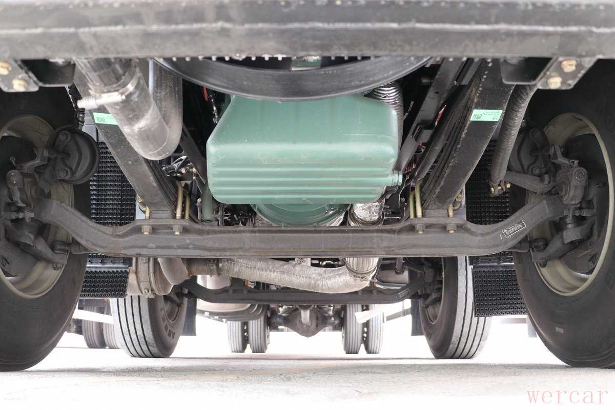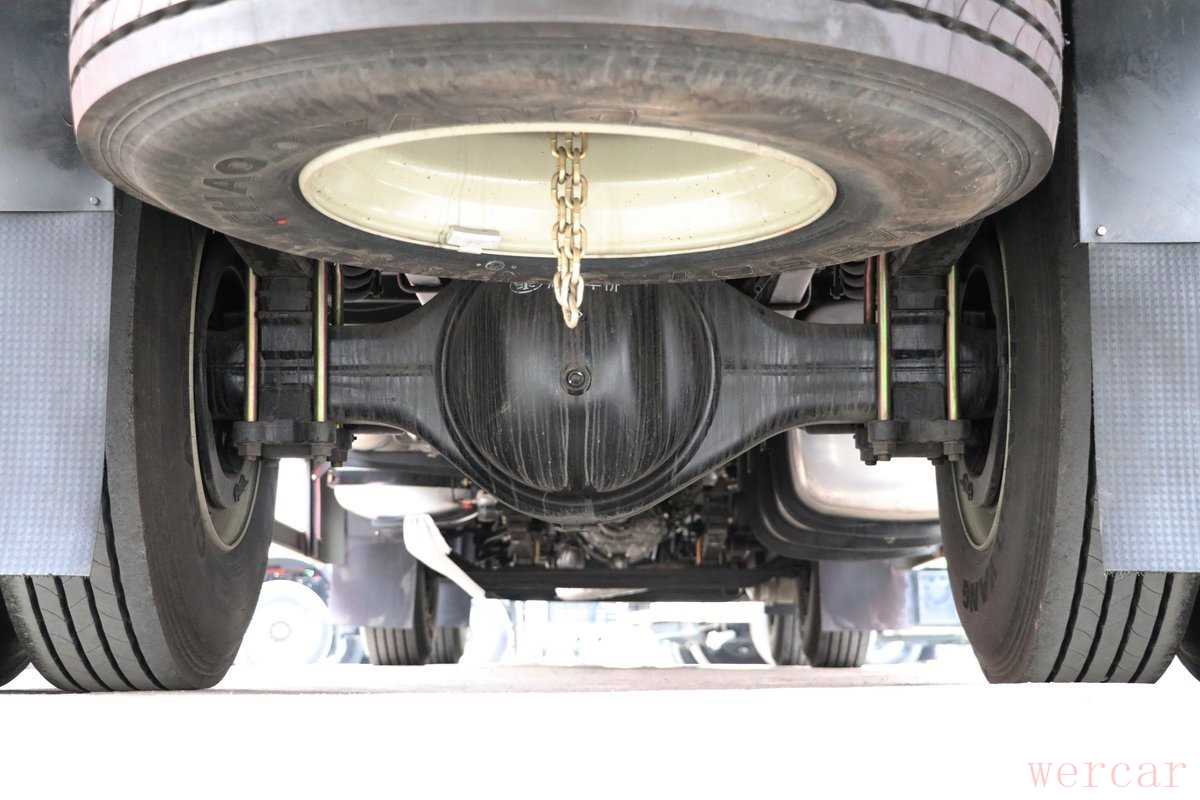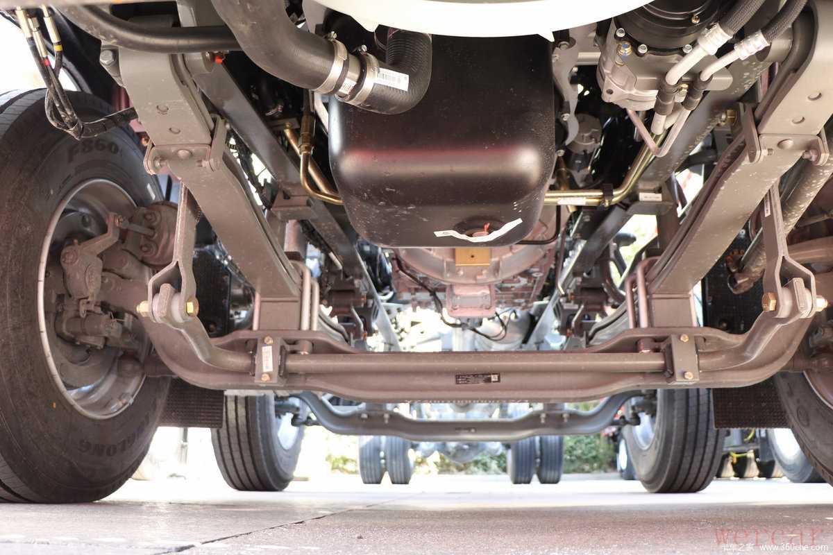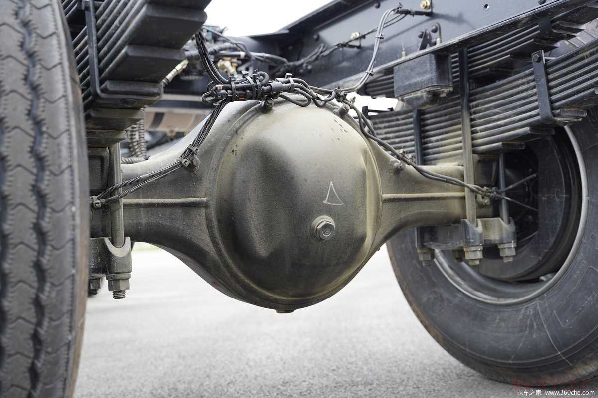 实拍车型采用法士特的9JS135T-B型号的9挡手动变速箱,这款变速箱为直接档设计,最高挡速比为1。油箱同为600升设计结构,后桥为东风德纳9T级后桥,速比为3.91,在发动机处于1200-1700rp经济转速之间,其最高时速可达到57-83km/h。