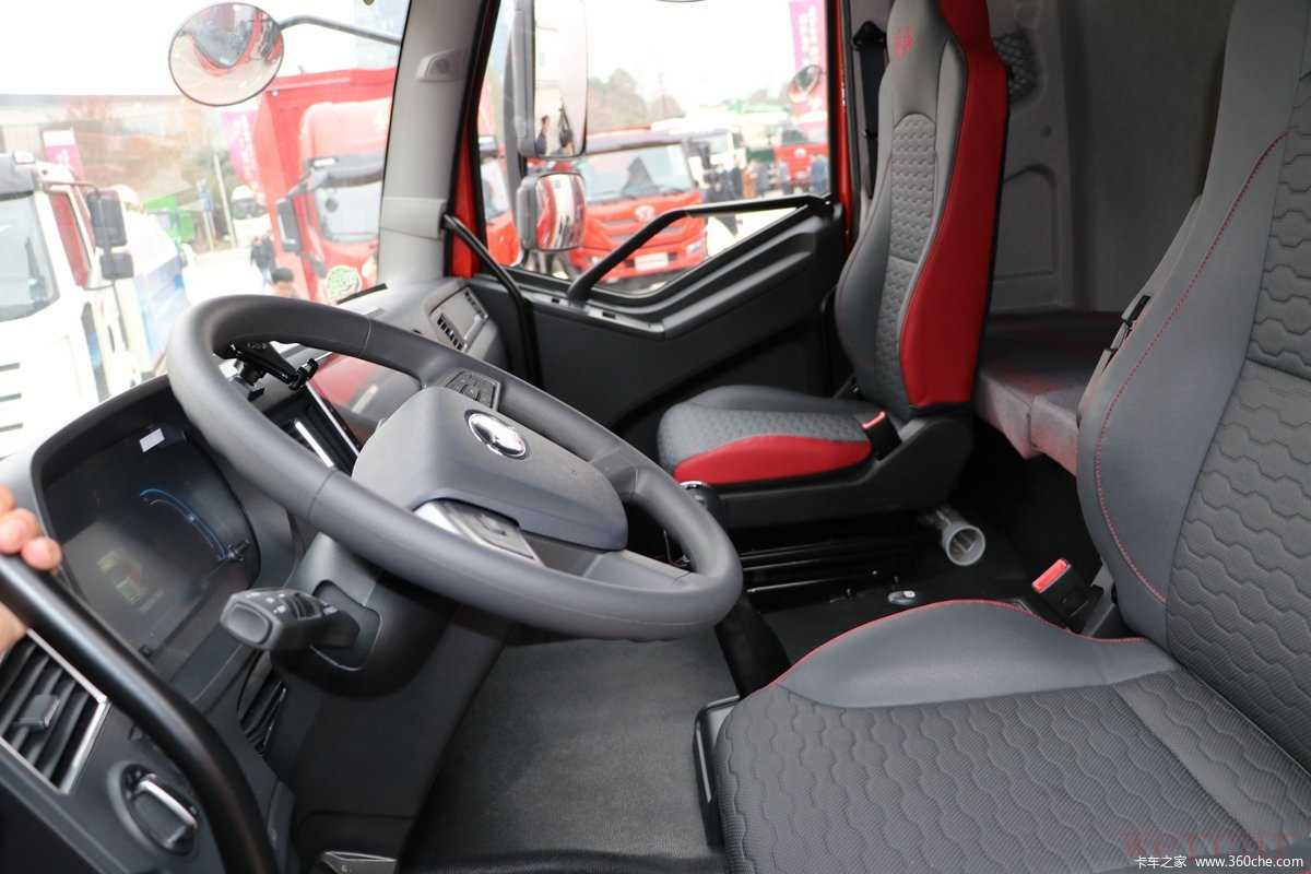 你见过使用牵引车驾驶室的载货车吗?可以说除了部分8X4车型以外,几乎市面上不会有两轴、三轴载货车使用这一设计,而东风商用车推出的天锦KR PLUS则是个特例。从外观方面来看,天锦KR PLUS和普通天锦车型的变化并不明显,但是其驾驶室宽度从2240mm增至2465mm,驾驶室内部净空也提升至2035mm。