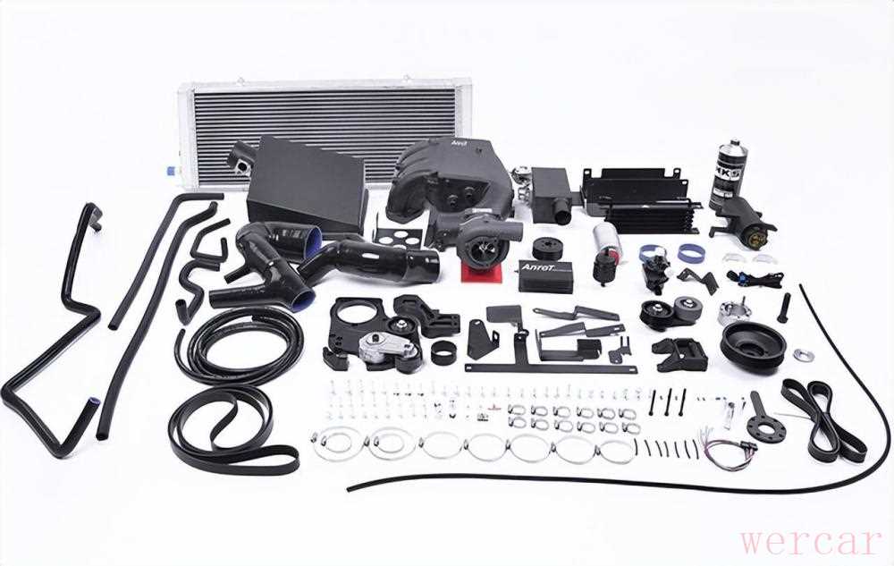 日本HKS是世界顶级的改装品牌,其出品的增压器更是出色,动力提升以及耐用程度和静音上是同类产品无法比拟的,也可以说是机械增压中最好的品牌了。上图是霸道4000专用的HKS机械增压套件,主要包括:HKS增压器本体、HKS专用润滑油、独立的散热系统、油冷器、冷却水箱、水壶、油壶、水泵、油泵、水管、油管、硅胶管、定制插件电脑、减压阀、定制CNC航空铝支架、水箱支架、线束和其他部件。
