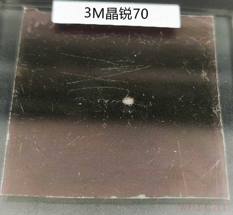 中凌K70实验通过2200小时后,除量子膜钻石70外,其他几款太阳膜都出现了明显老化,威固VK70和龙膜AVSP70出现了龟裂、鼓泡的现象;中凌K70和3M晶锐70出现了龟裂、鼓泡、变色的现象。