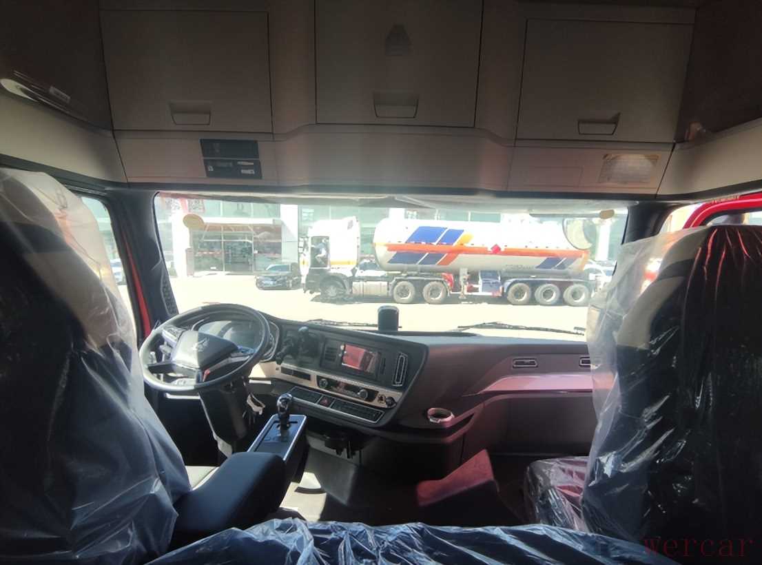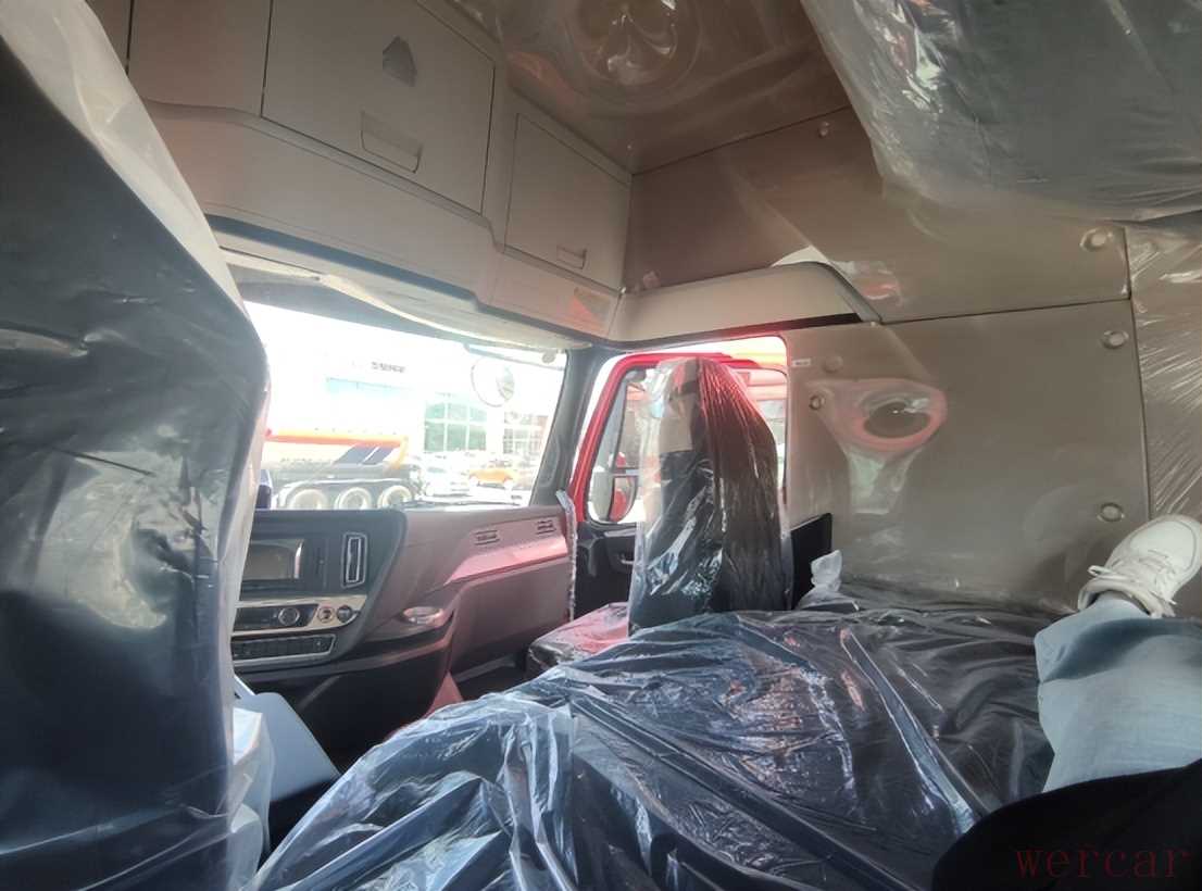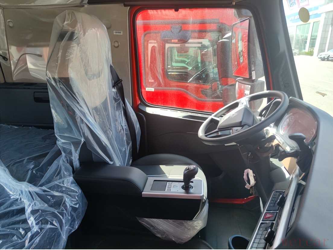 变速箱方面,这款车匹配的是重汽自主研发变速箱,“无忧换挡”技术突破的同时带来的是降低造车成本。不仅如此,换档位设计成扶手模式,停车休息可以扶起,大大加大了驾驶室内部空间,方便驾驶员活动休息。