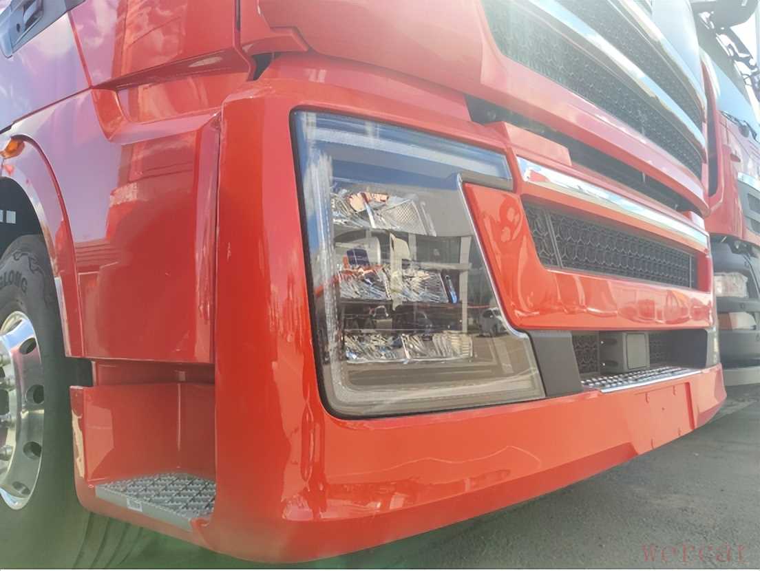 三段式设计,大灯、进气格栅、曲面玻璃层次感更加分明。整体鲜红配色,重汽独有的聚宝盆式前脸,象征着卡友们 “油门一响,黄金万两”的美好寓意!