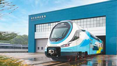 中国首列出口欧洲的双层动车组在位于湖南省株洲市的中车株机公司下线。 中车株机公司供图