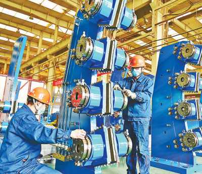 在河南省洛阳市中信重工车间内,工人忙着赶制矿山装备产品订单。 黄政伟摄(人民视觉)