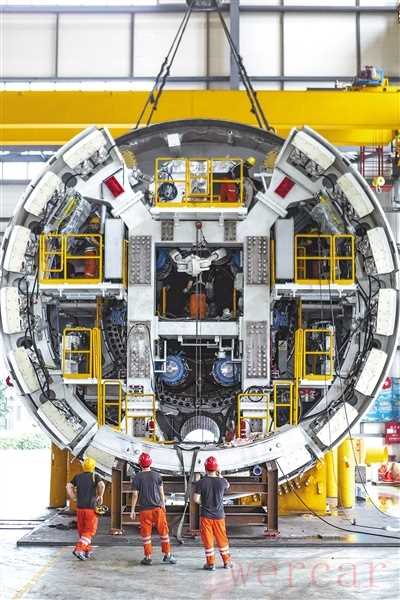 广东省佛山市顺德区,在中铁华隧联合重型装备有限公司生产车间内,工人正在组装盾构主机。 魏劲松摄(影像中国)