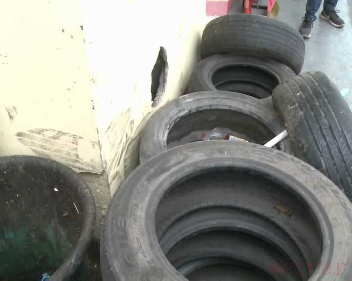 驾校的负责人介绍,好在这片墙角一直放有几堆废旧轮胎,被撞的是刚进驾校练车场的办公室外墙一角,墙角一侧新出现了一个篮球大小的孔洞。