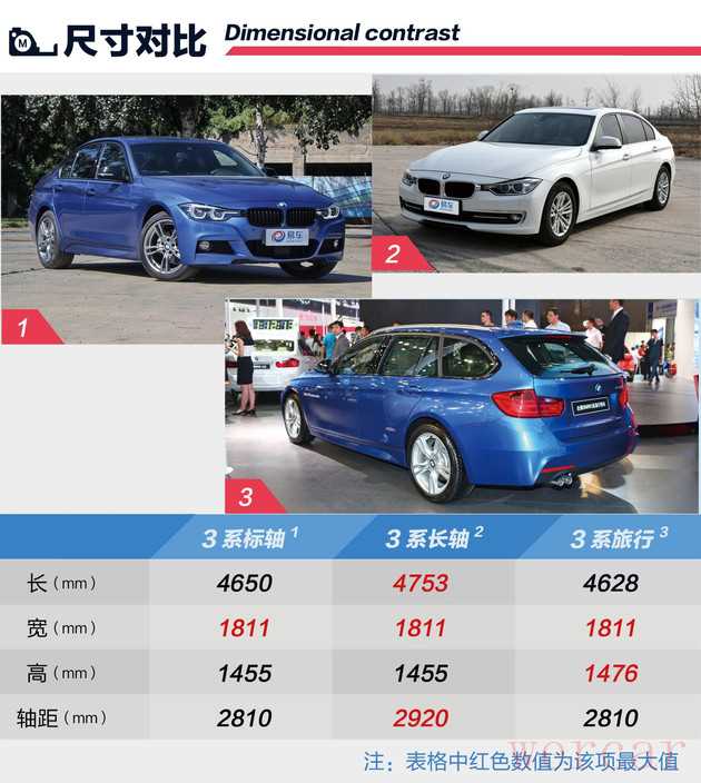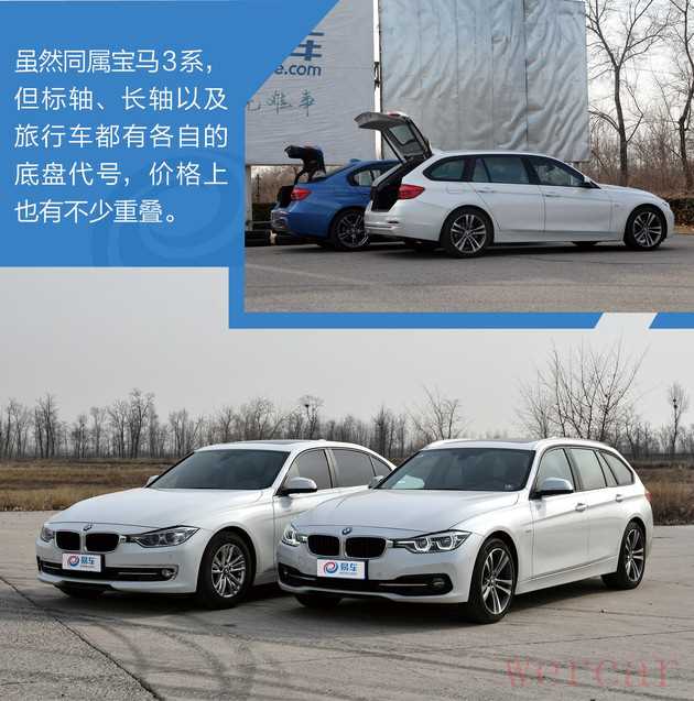 目前宝马3系涵盖了4类车:3系标轴、3系长轴、3系旅行以及3系GT,这四款车型都具有不同的底盘代号,其中3系标轴与3系旅行基于标准轴距打造,而3系长轴和3系GT则是基于长轴版车型打造;因此在整体尺寸上,参与此次空间对比的3系标轴和3系旅行车身尺寸比较接近,3系长轴在车身长度以及轴距上更大。