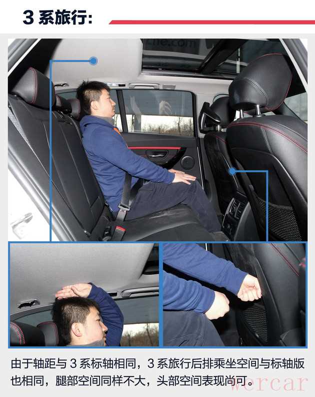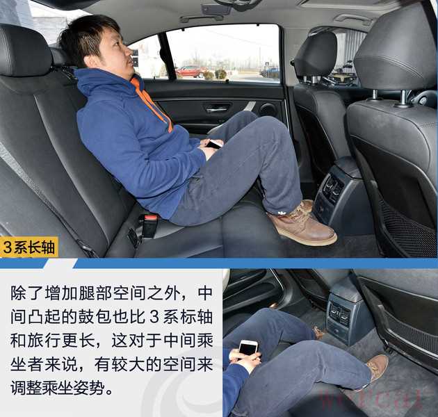 三款车的前排空间基本没差异,重点是国人比较看重的后排,3系标轴和旅行版的轴距均为2810mm,后排空间虽不大,但日常也够用;而3系长轴版轴距达到了2920mm,增加的110mm全部用于拓展后排空间;通过与3系标轴和旅行的比较,3系长轴无论是在视觉效果上还是实际乘坐时,空间表现都很不错,尤其是长时间乘坐时,有空间让乘坐者来变换坐姿,减少疲劳感;而3系标轴和旅行两款车,后排想要变化姿势则比较困难。