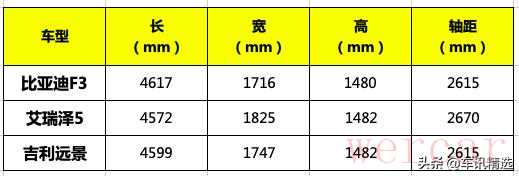 车身尺寸方面,F3的长宽高分别为4617*1716*1480mm,轴距为2615mm。说实话,在同级中并不太占优。