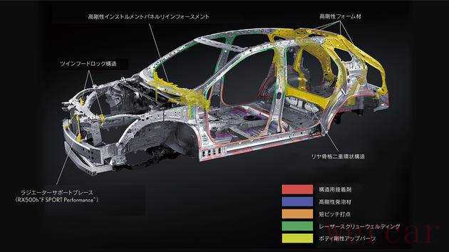 在推出这款后悬架时,GA-K平台的后段进行了全新开发,同样值得注意的是采用了新的焊接方式和结构胶。通过采用这些新技术,全新RX重量减轻了90公斤。此外,密封材料和空气动力部件进行了更改,以降低噪音并增加空气动力效果,确保更稳定的驾驶性能和安静性。这是一款更具高级感的SUV。