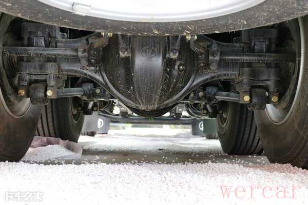 变速箱部分,这款车采用的是法士特10JSD120T十档箱,最高档是直接挡。搭配的后桥为汉德曼技术单级减速桥,速比为4.8。这样的传动比能够极大地发挥出发动机的马力,提高轮端输出的扭矩。