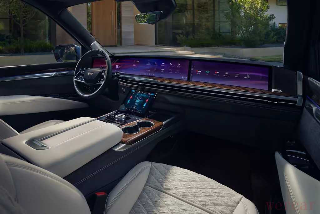 内饰以真皮、实木与金属材质打造,38英寸OLED曲面屏的像素密度是4K的两倍,搭配36扬声器AKG音响系统,重构数字豪华座舱体验。动力上提供6.2L V8自然吸气、3.0T柴油引擎可选,高性能版Escalade-V搭载机械增压V8发动机,零百加速仅需4.4秒,再加上空气悬架与后轮转向技术,让5.7米车身拥有灵活操控。如今,基于奥特能平台的IQ Escalade电动版续航超720km,续写旗舰传奇。