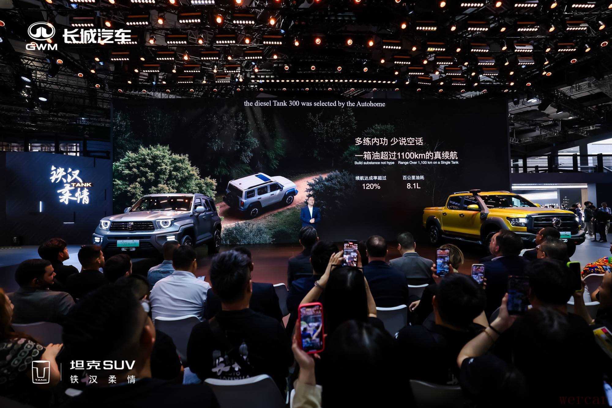 大致的逻辑是这样,坦克在车展前夕让柴油版的坦克 300 和一批新能源车型做了一次京沪高速续航挑战,最终坦克 300 柴油版以超 120% 的续航达成率成为了唯一达到官标续航里程的车型,且补能费用比混动和增程车型更低。