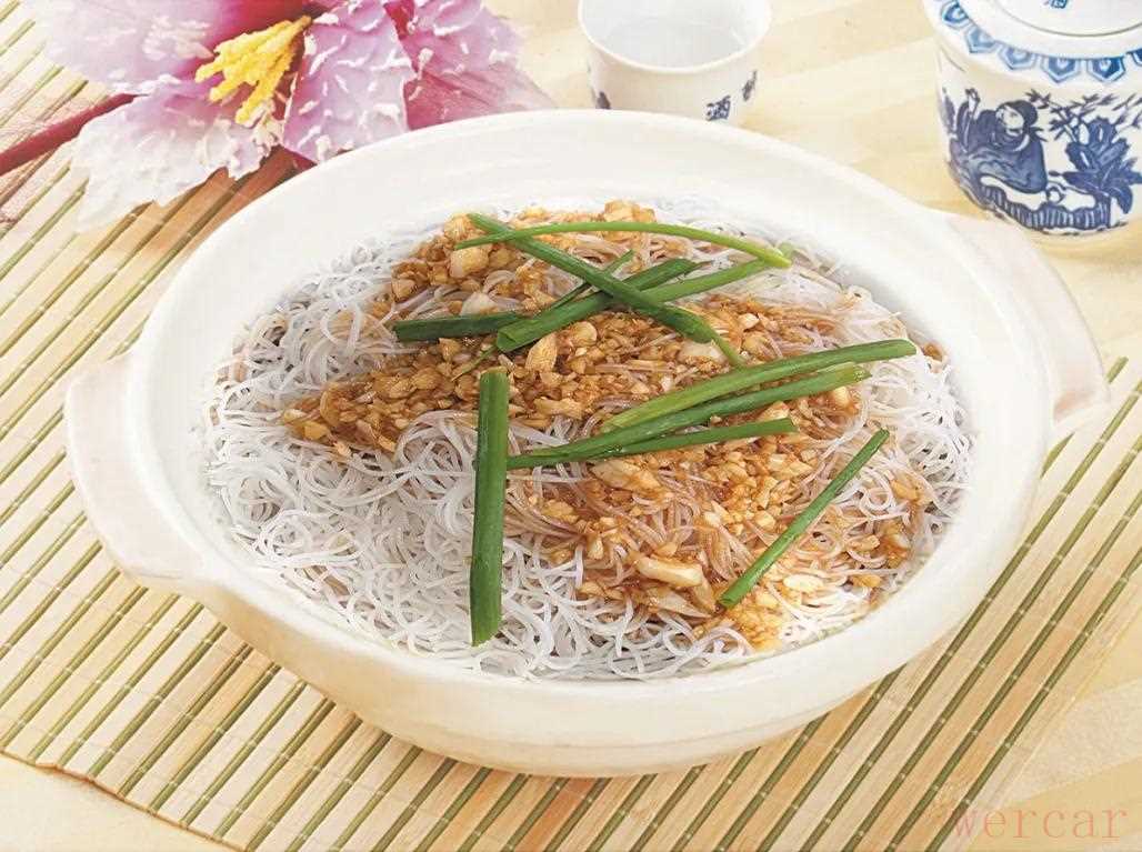 先将米粉放入100℃的开水中浸泡约2分钟,或用冷水浸泡10分钟,捞起滤水后加少许熟油拌匀备用。