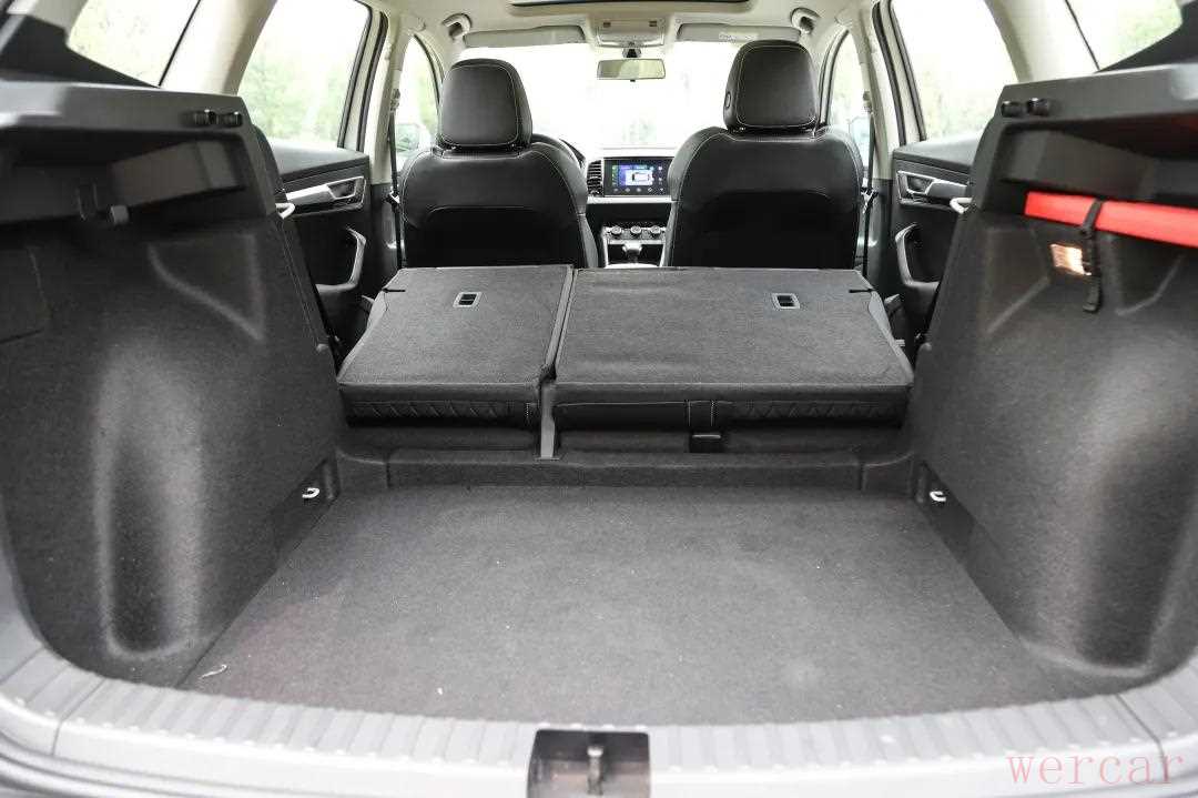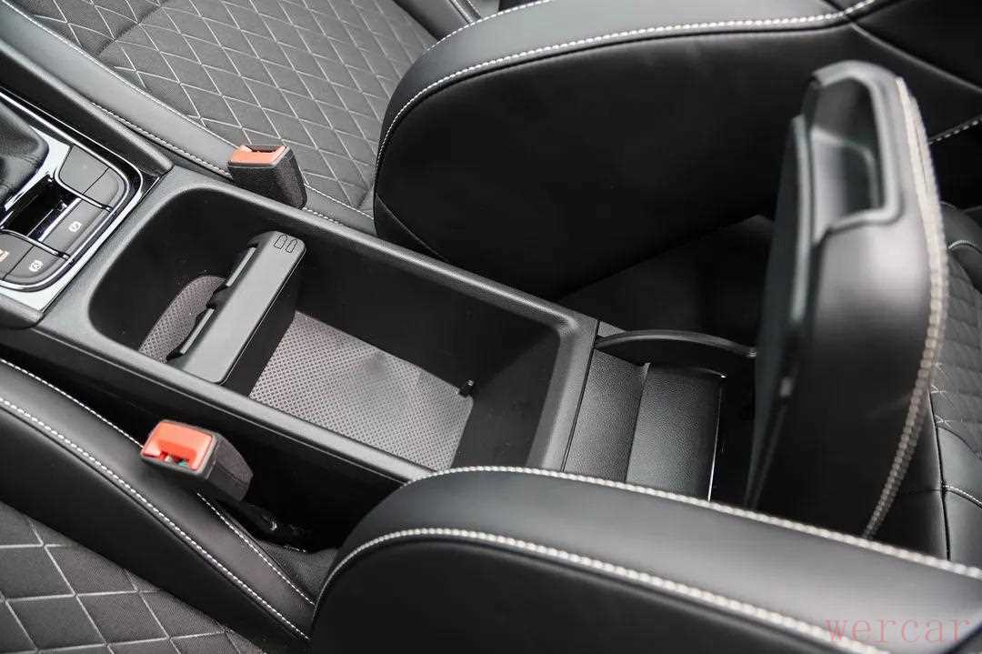 在空间体验上,身高173cm的体验者将前排调整到合适位置后,后排可以达到头部一拳、腿部近两拳的表现,配合亮色内饰和全景天窗,后排乘客并不会感受到压抑感。在车内其它空间利用率方面,柯珞克的储物格比较丰富,它的表现依旧不错。