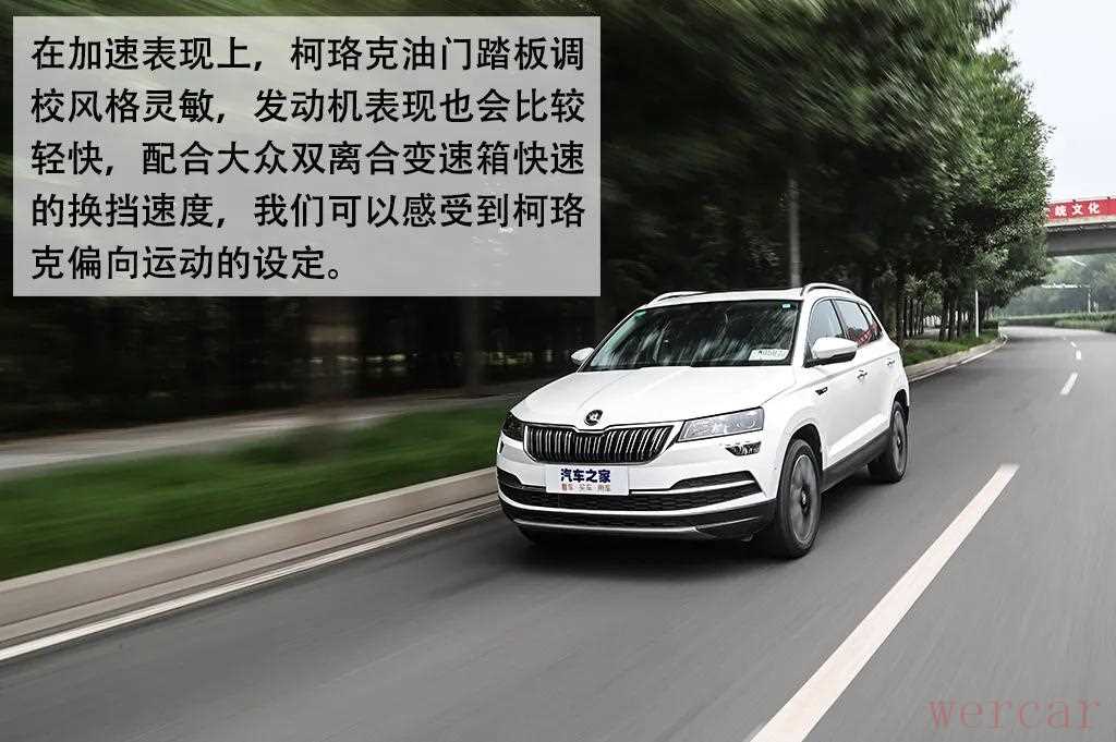 不过它也确实存在一些先天问题,比如:小排量发动机在100km/h以上的再加速能力会随着速度上升明显变弱,而更高转速带来的发动机噪音也会传递到车内。另外,柯珞克配备了双离合变速箱,变速箱的换挡速度很快,但堵车低速频繁在2、3挡位上切换也会带来一些顿挫。