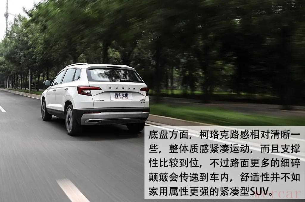 综合来看,柯珞克在加速以及底盘质感的表现更偏向运动,不过整台车的油耗控制更像一台家用属性SUV,由于条件有限我们并没有实测准确的100公里所消耗的燃油数值,但近70公里的表显油耗和官方提供的5.9L/100km数值近乎相似。小编有话说:柯珞克源于大众MQB平台,经过多年市场积淀,该平台下的产物在国内市场也收获到了不错成绩。在设计上,柯珞克用硬朗线条强调力量感,层次感强,它的颜值个人比较喜欢,而且官方还提供了多种颜色搭配,相信柯珞克会受更多年轻人欢迎。在内饰配置层面,试驾车配备了自适应巡航系统、自动泊车及导航+斑马系统,柯珞克做到了这个价位合资紧凑型SUV较好的水平。至于动力,1.4T发动机的动力输出对于日常用车完全够用,而且油耗表现出色,它也能降低一些用车成本。