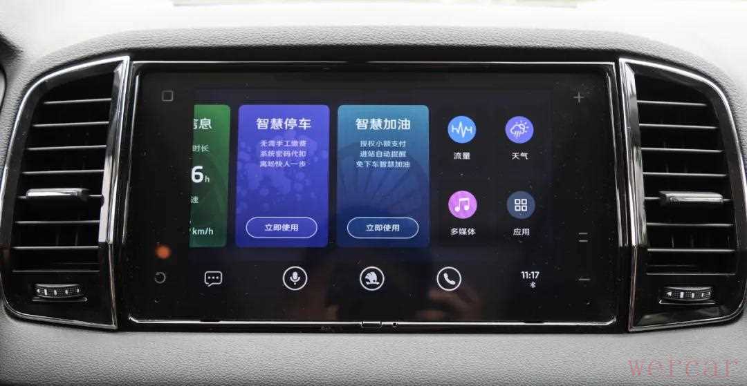 柯珞克全系标配9英寸中控屏幕,同时内置斑马智行互联系统,它可以实现实时GPS导航、手机映射、车联网等功能,我们还能通过语音系统(可通过“你好,斯柯达”唤醒语音控制系统)控制多媒体系统、导航系统以及电话。实际体验中,UI设计简洁明了,系统更多以实用为主,操作起来也要便捷许多。