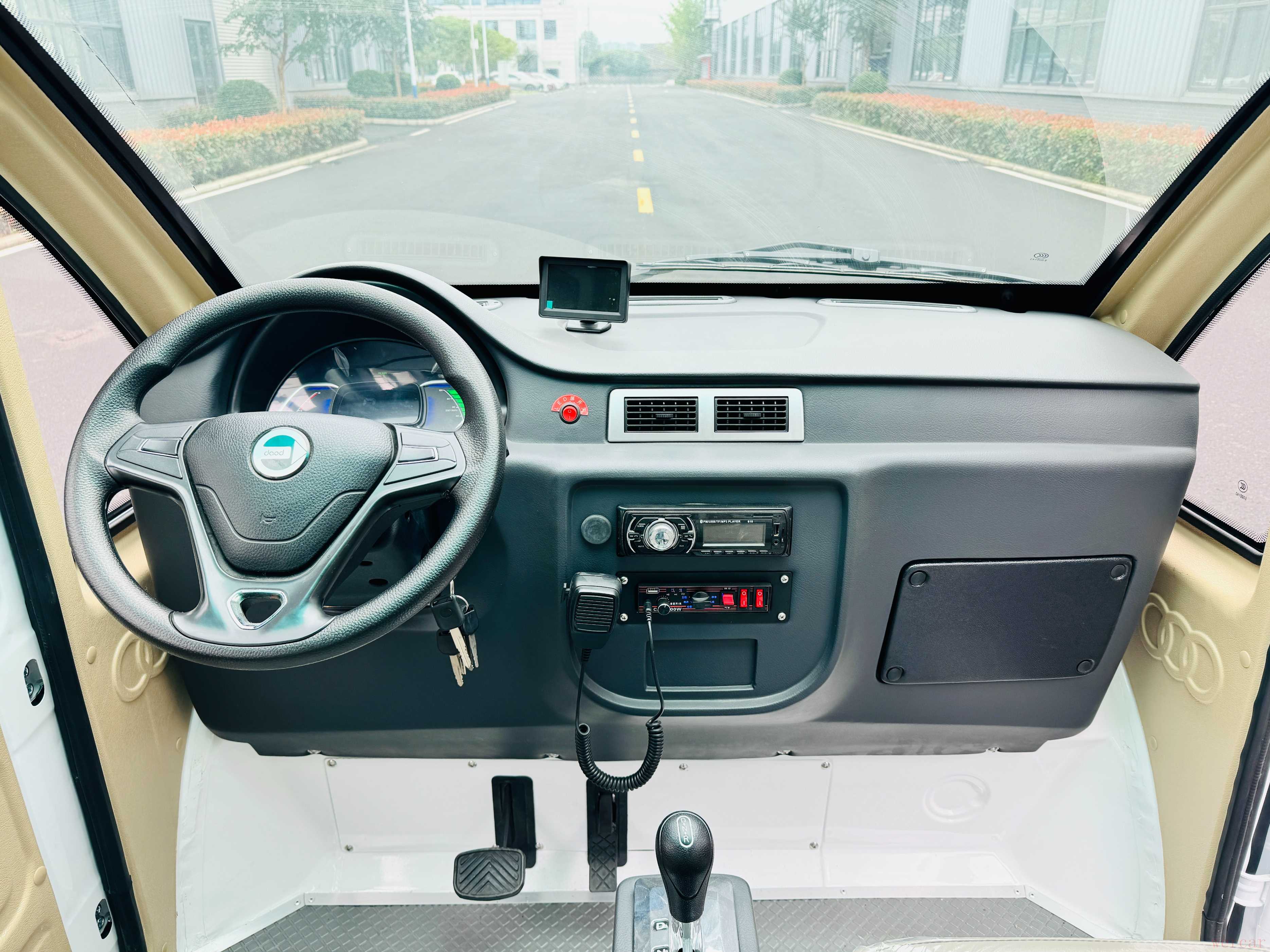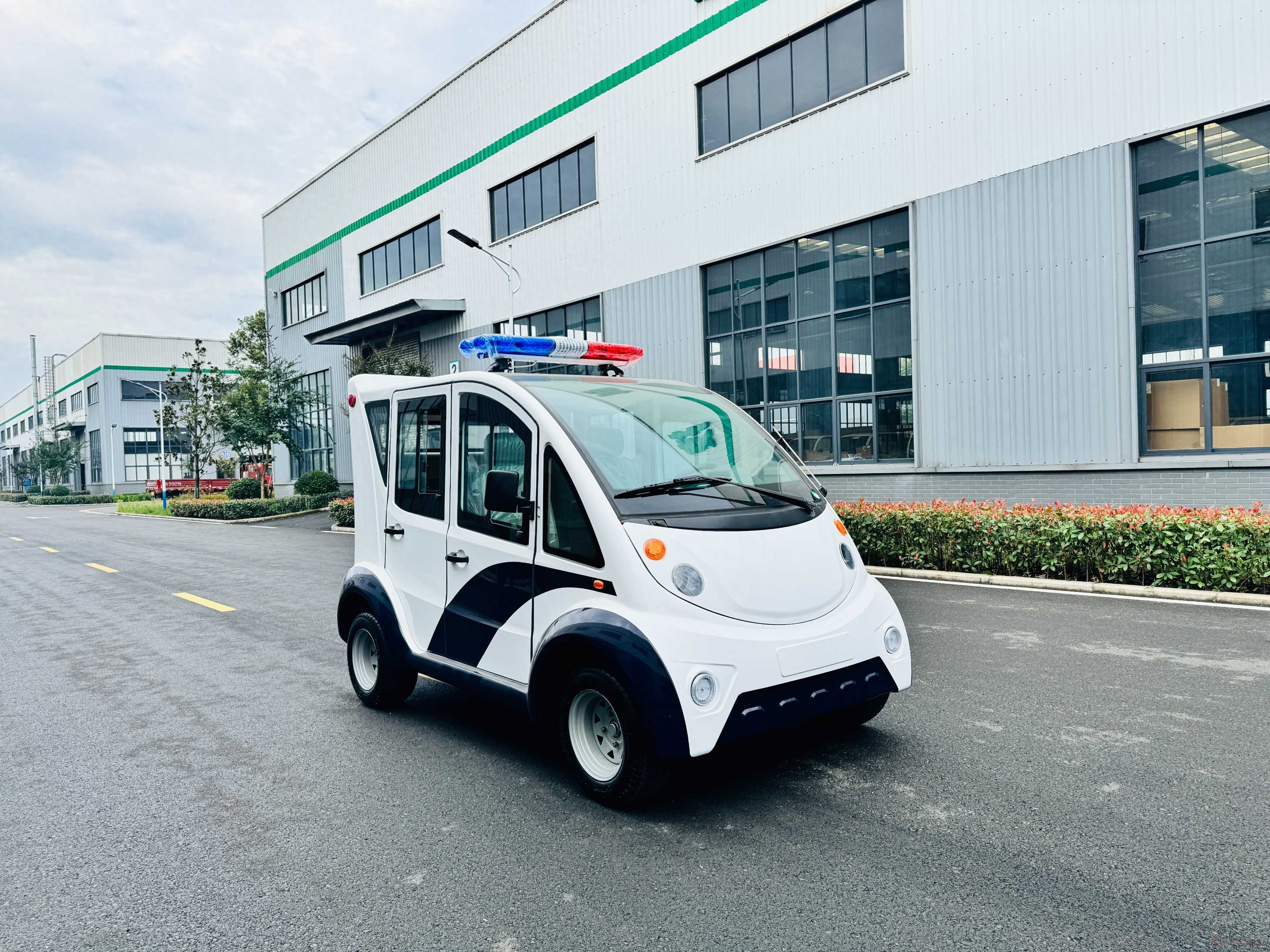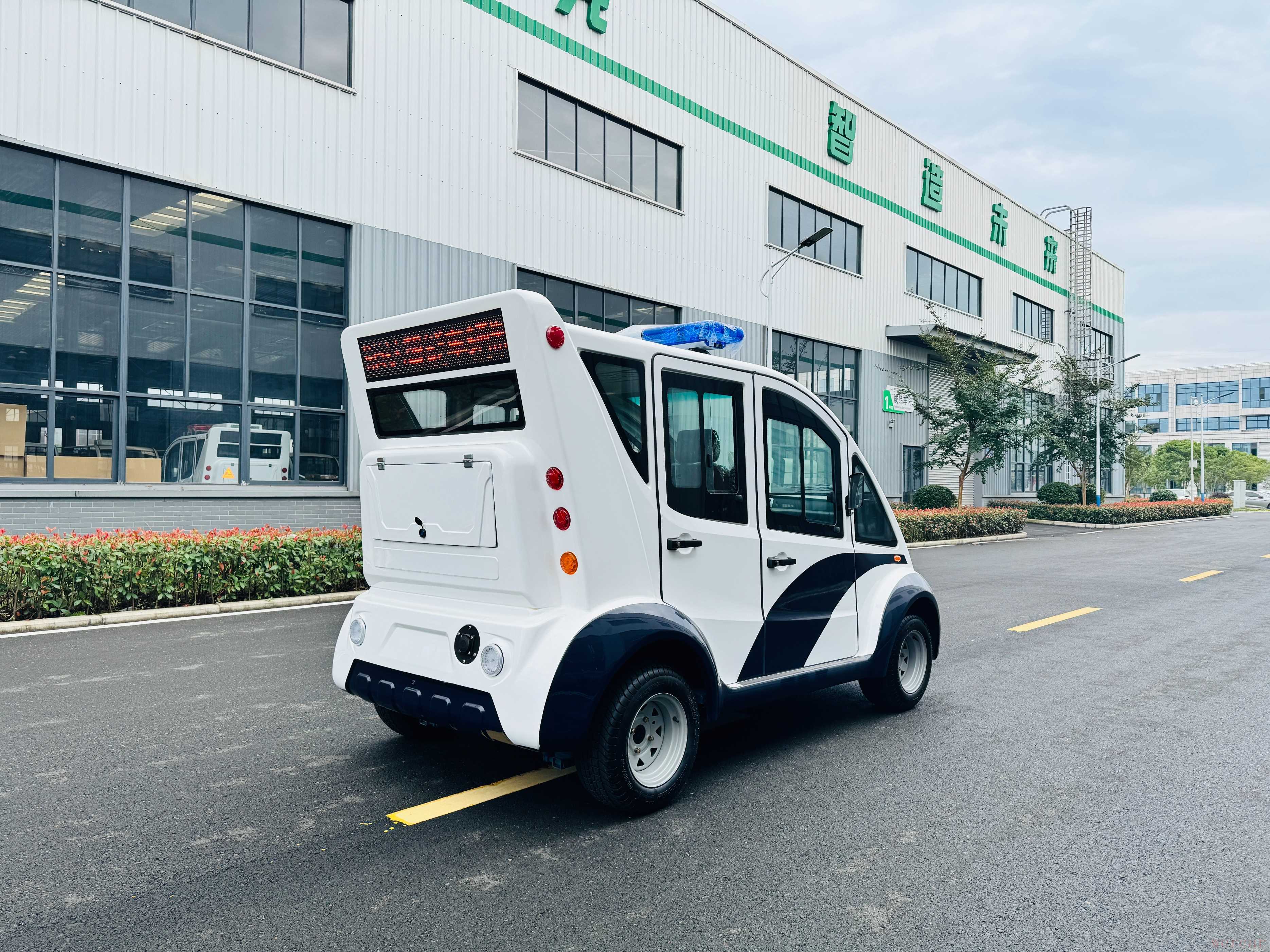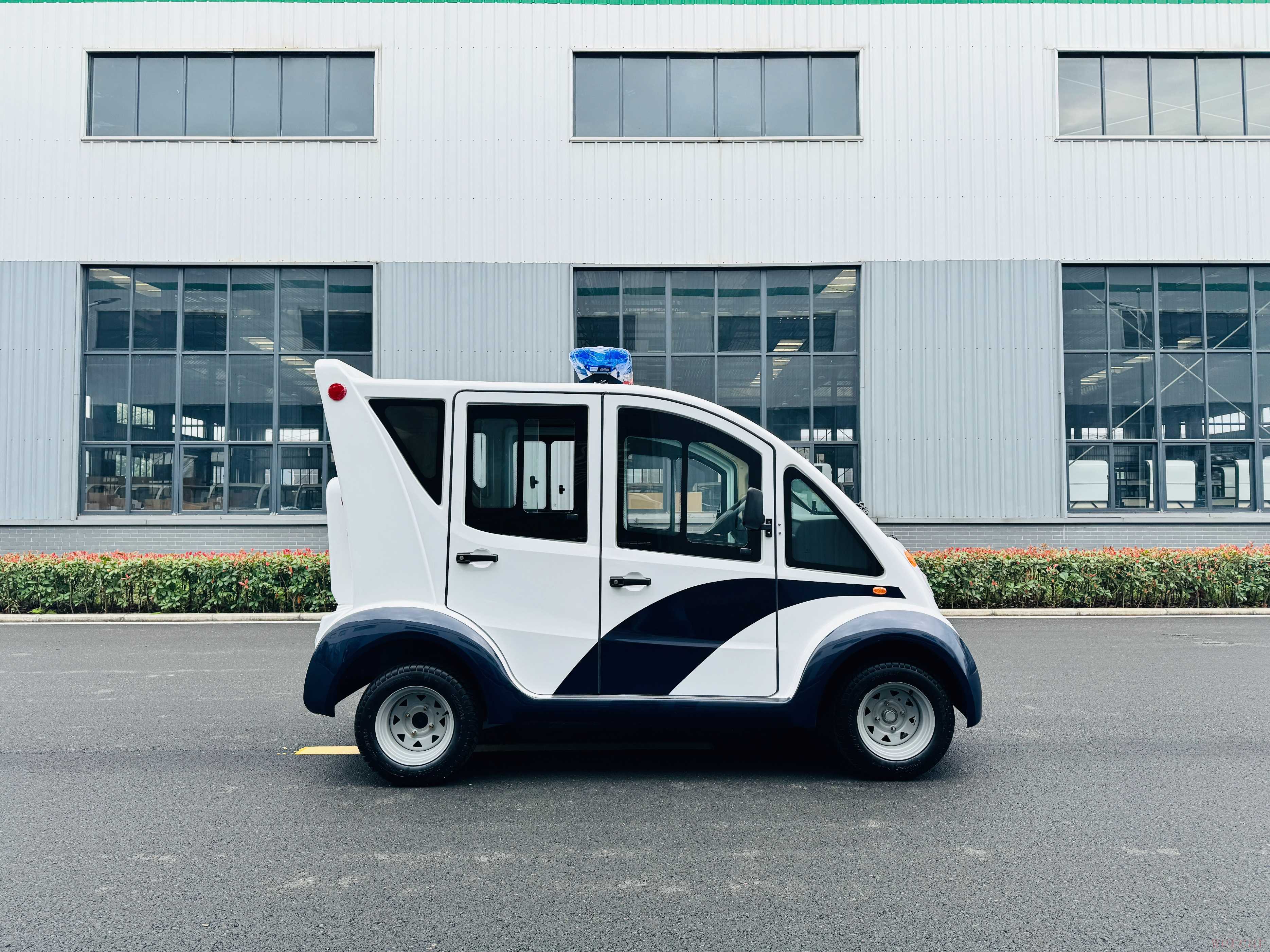 最惊喜的是它的 “硬核实力”:5KW 交流电机搭配智能电控,25% 的爬坡度在景区山路、小区坡道都能稳如老狗,100km 续航跑一整天巡逻完全够用,晚上插电 8 小时就满血复活。封闭式钣金车身安全感爆棚,推拉玻璃窗方便观察路况,爆闪灯 + 喊话器更是标配,处置突发情况超及时。