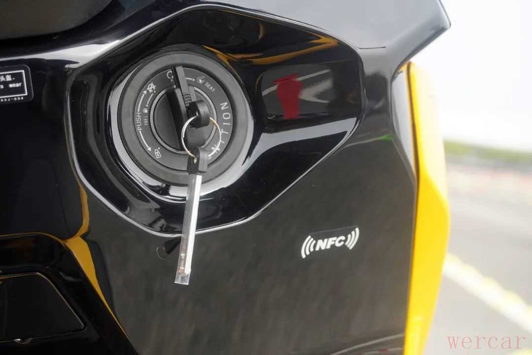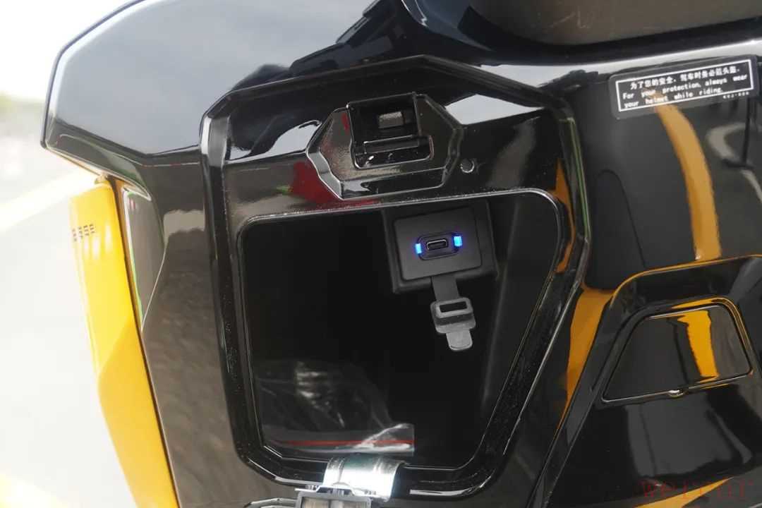 在智能锁具方面,NWG150也与F125保持一致,除了机械钥匙还能使用蓝牙、APP以及NFC等多种更方便的解锁方式。左侧部分内置了一个封闭式储物仓并带有一个typeC供电接口。这个空间并不能装下常见的600ml饮料瓶,但小号的350ml饮料瓶却能并排放下两个,封闭空间放一些杂物和手套还是蛮不错的。