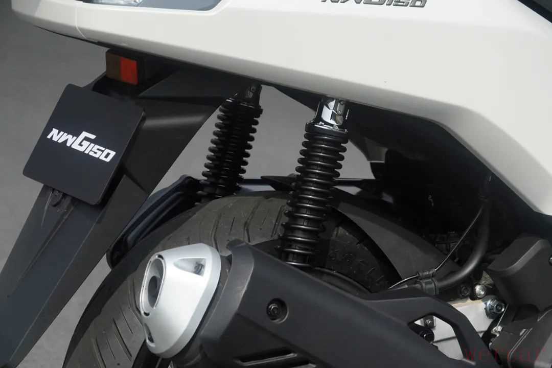 从实际体验来说,由于采用了同样的车架形式,135kg自重的NWG150在低速操控和灵活的穿梭特性上与PCX相当接近。低重心的设计无论是弯道倾倒感受还是日常最基础的推舵转向都能表现出轻松和让人很容易信赖的稳定感。