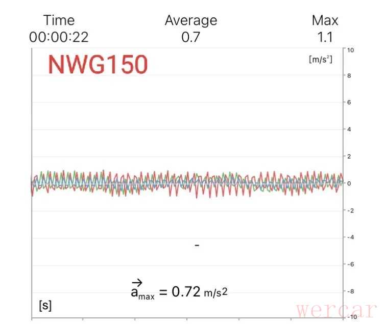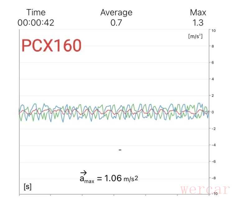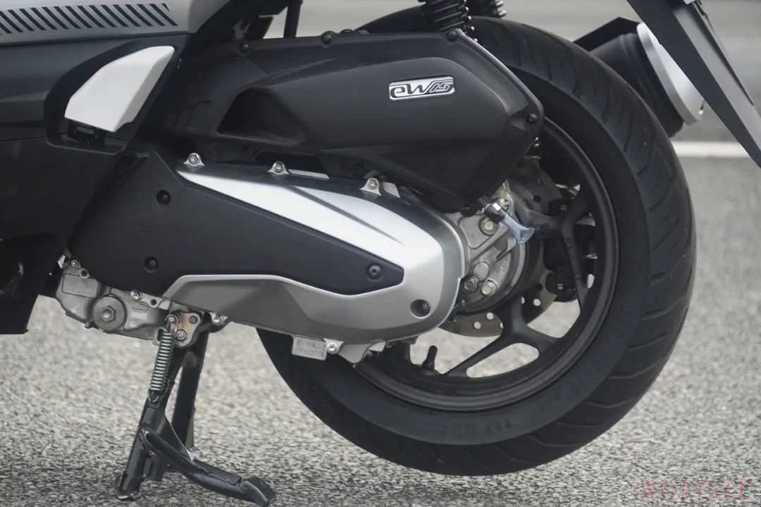 根据官方资料,NWG150所装备的eW15发动机最大功率为11.4kw,电喷系统来自博世。与本田系的另一家合资品牌不同,eW15发动机是在保持了与PCX160相同缸径的前提下稍微缩短了活塞行程以获得免缴购置税的资格。如此一来短活塞行程的特性也让eW15发动机性格更加偏向于高转速域,能做到更迅速的油门响应和更活跃的发动机动态。基于这种改变,五羊-本田同时调整了eW15的传动输出,低速域的加速体感与更大排量的版本相比并没有明显的削弱,反而是在震感和运行品质上的表现还要更好一点,用手机震感APP测试也证明了这一点。
