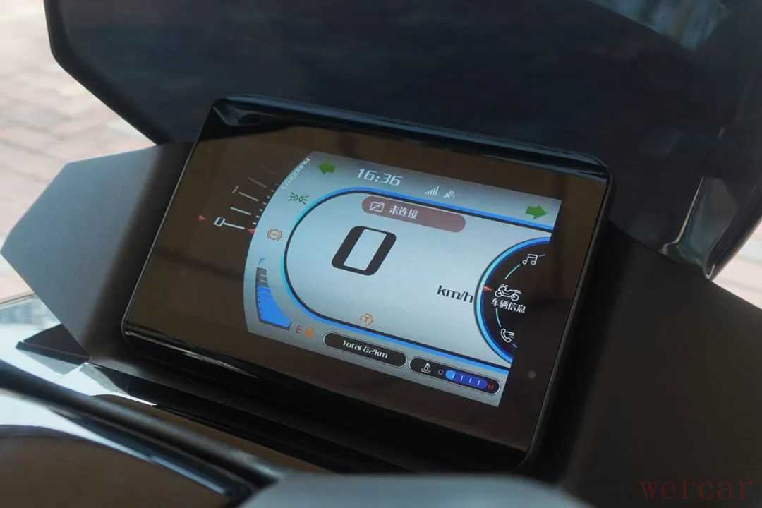 仪表部分NWG150采用了合资车型中少见的大尺寸TFT彩屏,并带有投屏导航能力。UI用户界面的设计与整车造型一样独特,左侧是一个数字模拟的转盘式发动机转速表,右侧功能显示区比较全面,当前的车辆状态和侧撑熄火开关等信息都用图标的方式一应俱全的显示。