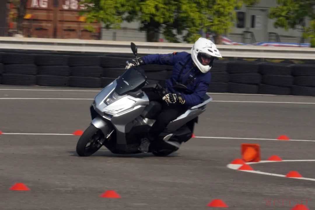在现场也有友媒用手机APP进行了简易的0-80km/h加速测试,也证实了NWG150与PCX几乎处于相同水平。在窄路调头等金卡纳常见的科目中,发动机的动力响应速度相当轻快和准确,在需要动力来支撑推正车身时很容易找到合适却不过分的发力点。所以,在要缴购置税的版本和省钱但排量更小之间的犹豫已经可以得到明确答案,选更活跃的eW15一定更好。