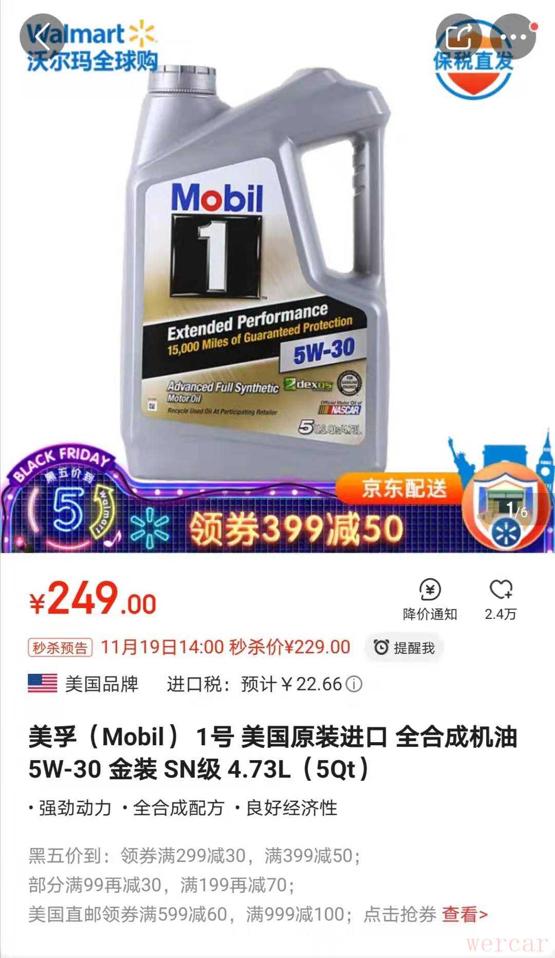 看到上面两张图了没,第一张图其实就是国内大名鼎鼎的金装美孚一号。有没有觉得很便宜,国行的金装美孚一号买这么一大桶没个七八百都下不来吧。