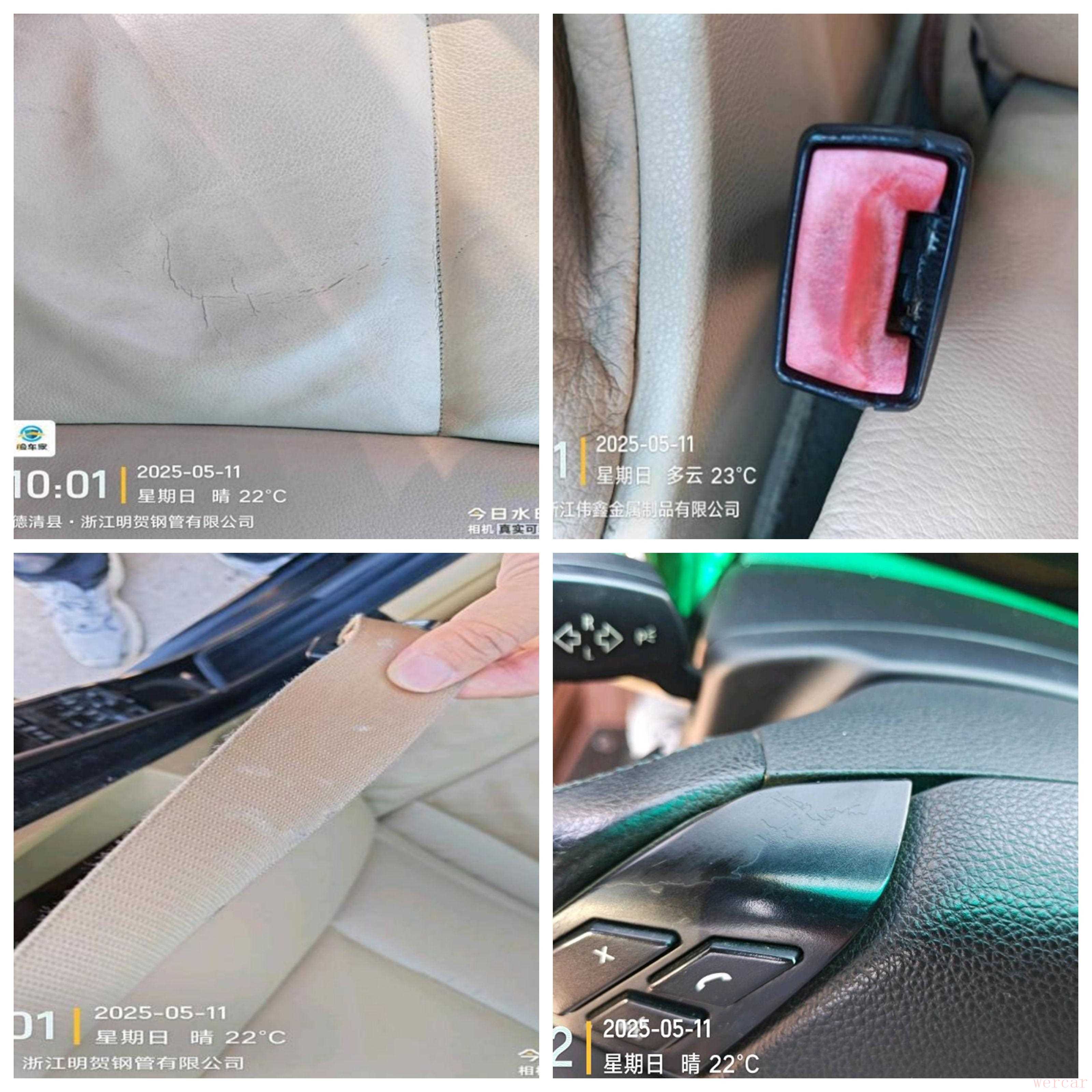 车辆的主驾座椅皮革存在磨损掉色,座椅海绵局部存在塌陷,皮革局部存在开裂现象,主驾安全带边缘存在磨损起毛现象,安全带卡扣存在磨损泛白痕迹,主驾方向盘皮革存在翻新蒙皮,方向盘上的多功能按键及其饰板均存在磨损掉色。