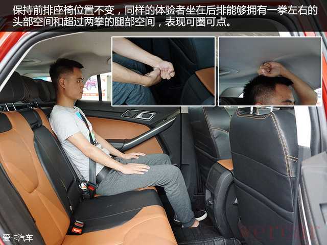 内部空间表现方面,身高175cm的体验者坐进前排且调好位置之后,能够得到一拳左右的头部空间;保持前排座椅位置不变,同样的体验者在后排能够拥有一拳左右的头部空间和超过两拳的腿部空间。总体来说,驭胜S330的乘坐空间表现还是可圈可点的。