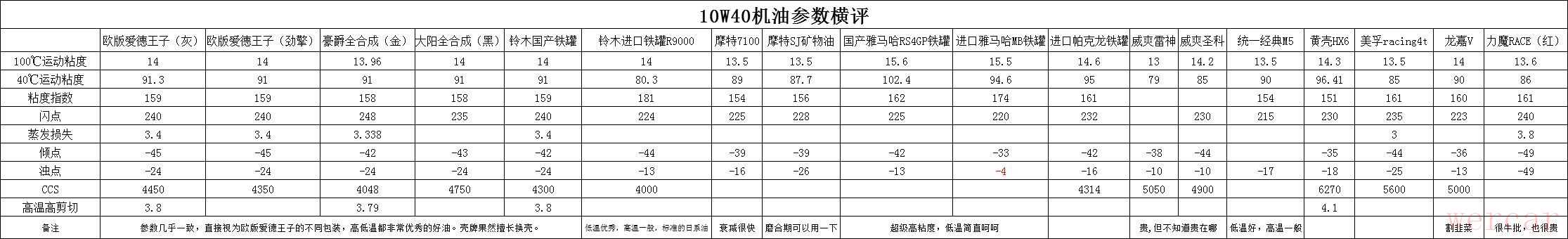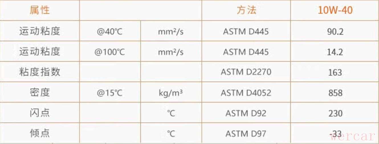 上图为爱德王子10W-40的性能参数