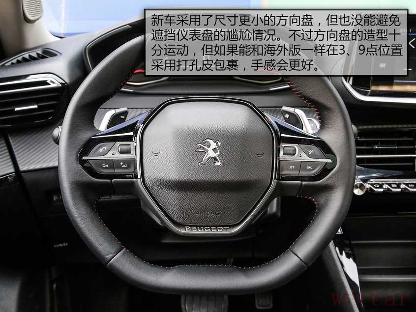 全新东风标致2008的驾驶席看上去还是一样的炫酷,但坐上去后还是会发现一些不足。虽然它的方向盘尺寸小了不少,但在某些情况下依旧存在挡仪表的问题,把方向盘调低能缓解一些,但身高较高的驾驶者这样调整后会出现方向盘磕腿的情况。