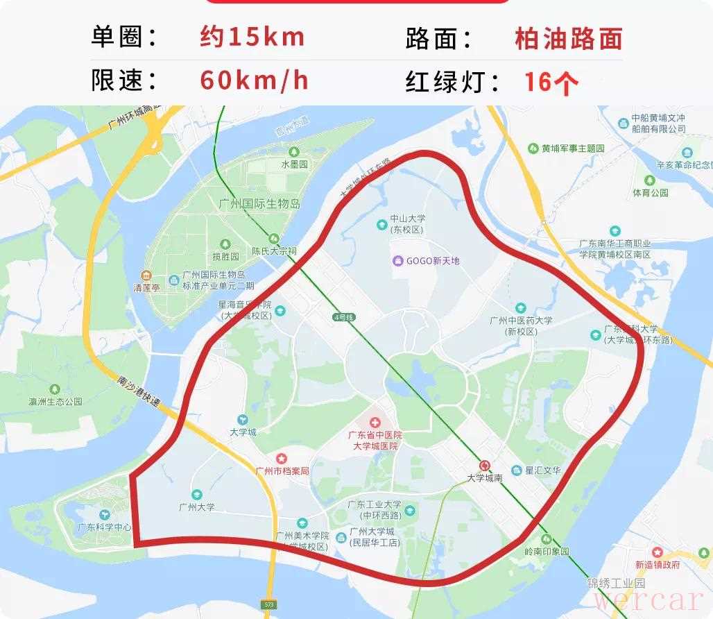 测试油耗的路线还是选择广州大学城外环路7圈,每圈15公里,总测试里程约为105公里。大学城外环都是柏油路面,有16个红绿灯,限速60km/h,基本模拟了日常的驾驶路况。