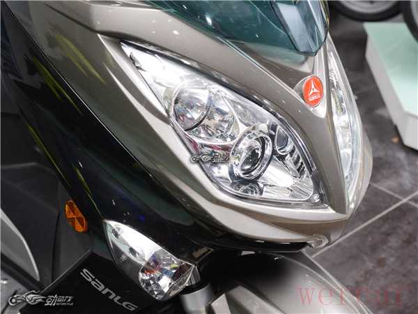 大灯真的是很有亮点,感觉有好多灯啊!最上部为一边两颗的LED示宽灯,左右两侧各两组卤素远近光灯,其中两组还配备了透镜,在夜间的照明范围应该会很广。