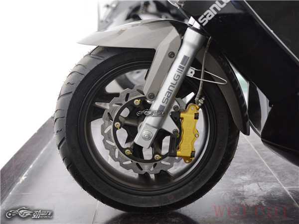 初见三铃Eros SL350T时,就让人产生一种想做上去试试的冲动,大型踏板车的驾驶舒适度是衡量它是否称职的重要标准之一,而它的坐姿还是让小林比较满意的,只是腿部空间略显局促,是不是我腿太长的缘故?它采用实际排量为347毫升的单缸水冷4气门电喷发动机,车重为190公斤,相信它的动力表现还是不错的。