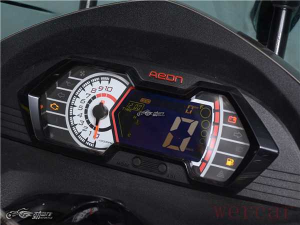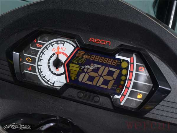 带有自检功能的指针加液晶仪表,液晶屏幕的字体很大,骑行中读取数据会很方便。