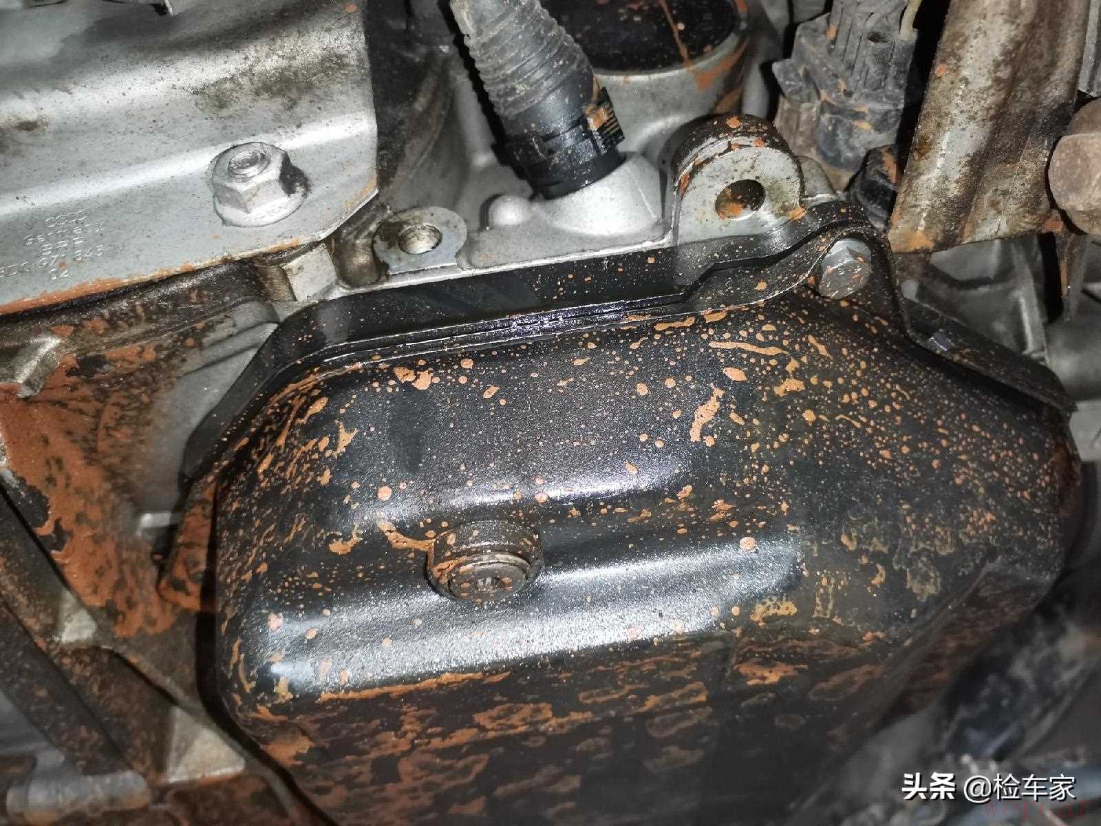 变速箱油底壳部位的渗油有些严重,后期需要及时处理。