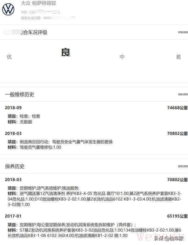 到这里基本上就完成了所有的检测项目,拿出手机看一下后台发来的维保记录,上面没什么事故记载。最后一次进店是在2018年9月份,当时登记的公里数是74668KM,距今又过了三年多时间,这样来推算的话,公里数也没有调表。