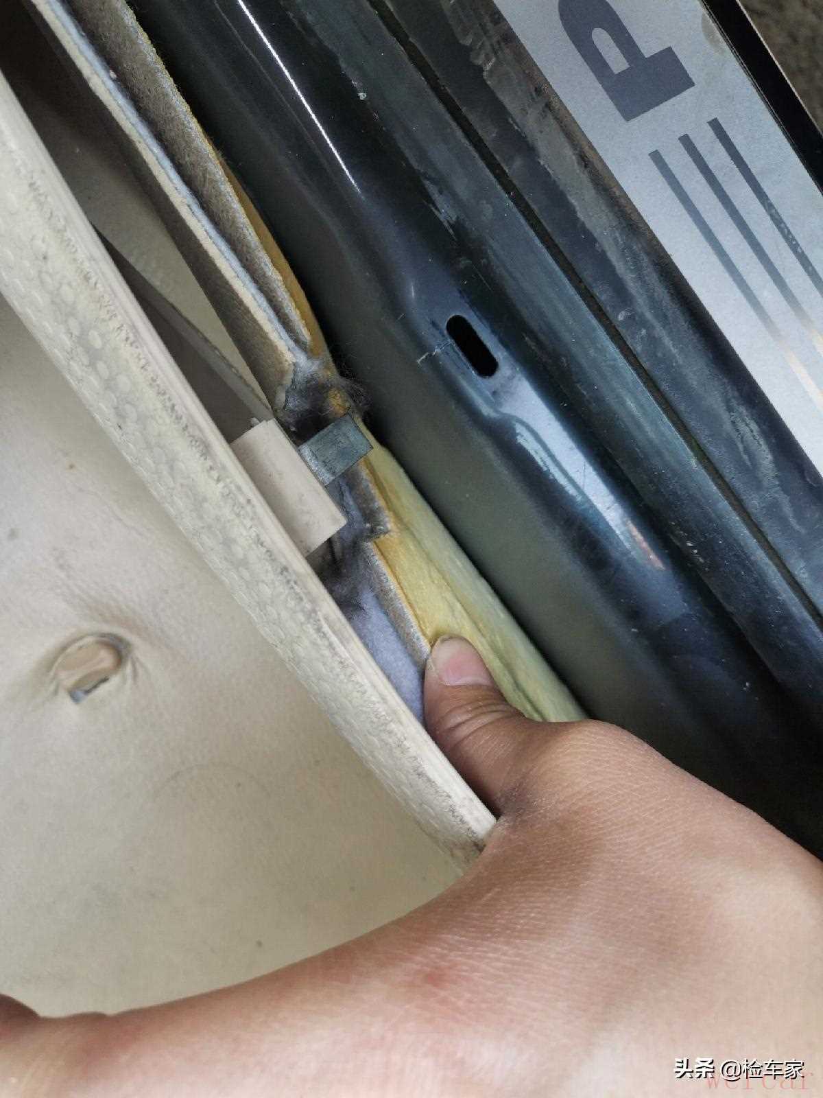 既然铺了地胶,座椅肯定是拆过的,直接把门槛饰板拆开,检查里面没有发现泡水的泥沙痕迹。