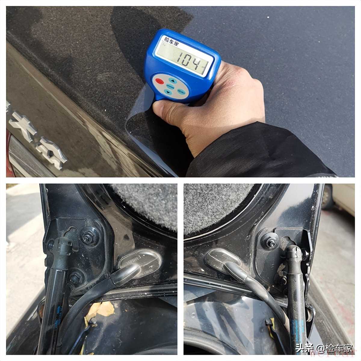 后备箱盖也是原厂漆,铰链螺丝也不存在拆卸痕迹,后边的追尾事故可以排除了!毕竟后盖下面是空的,没有骨架支撑,一旦有碰撞,后盖多多少少都会有损伤。