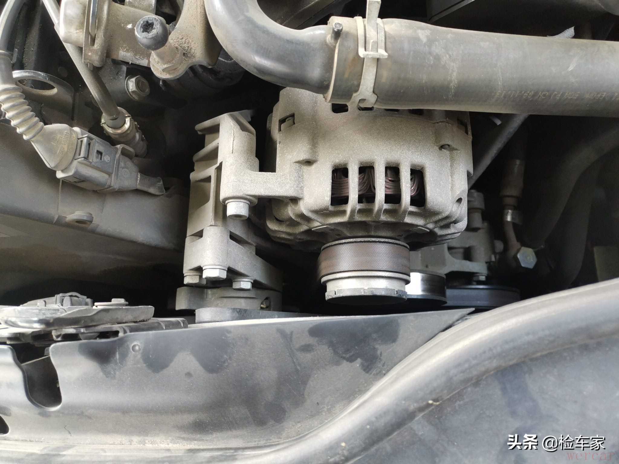 正时盖没拆过,这是一个好消息,说明发动机不存在分解大修的情况。其它就没什么看的了,等会儿再看底盘下边的情况。