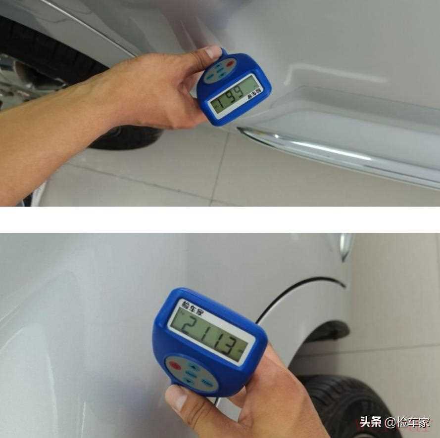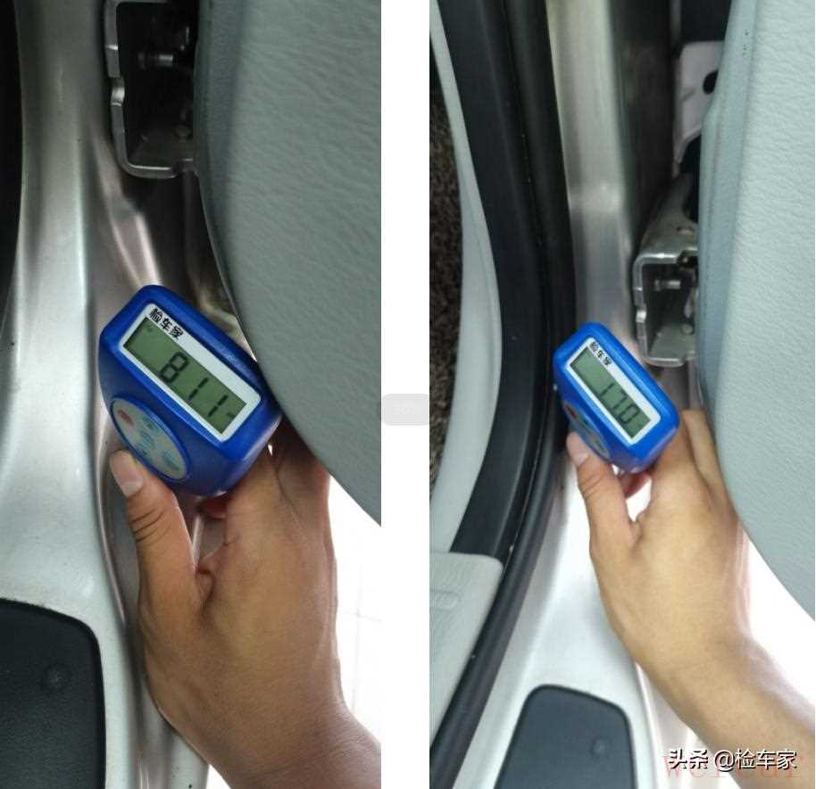 可以明显的看到右A柱内侧的位置钣金喷漆数值较大,而且长度已经超过了8cm,所以按照国标定义,可以直接判定为事故车,右前底边梁的数值也高达1000多,看来右前侧的撞击事故不小啊。A柱属于车辆的结构件,撞击造成的变形钣金,会影响它的刚性,同样的位置再发生事故,就没有原厂的强度了,A柱的位置很容易入侵驾驶舱!这也是事故车最大的危害,如果不发生事故还好,就怕二次撞击,那不是拿命做赌注吗,赌它不会再同样的位置再撞一次?