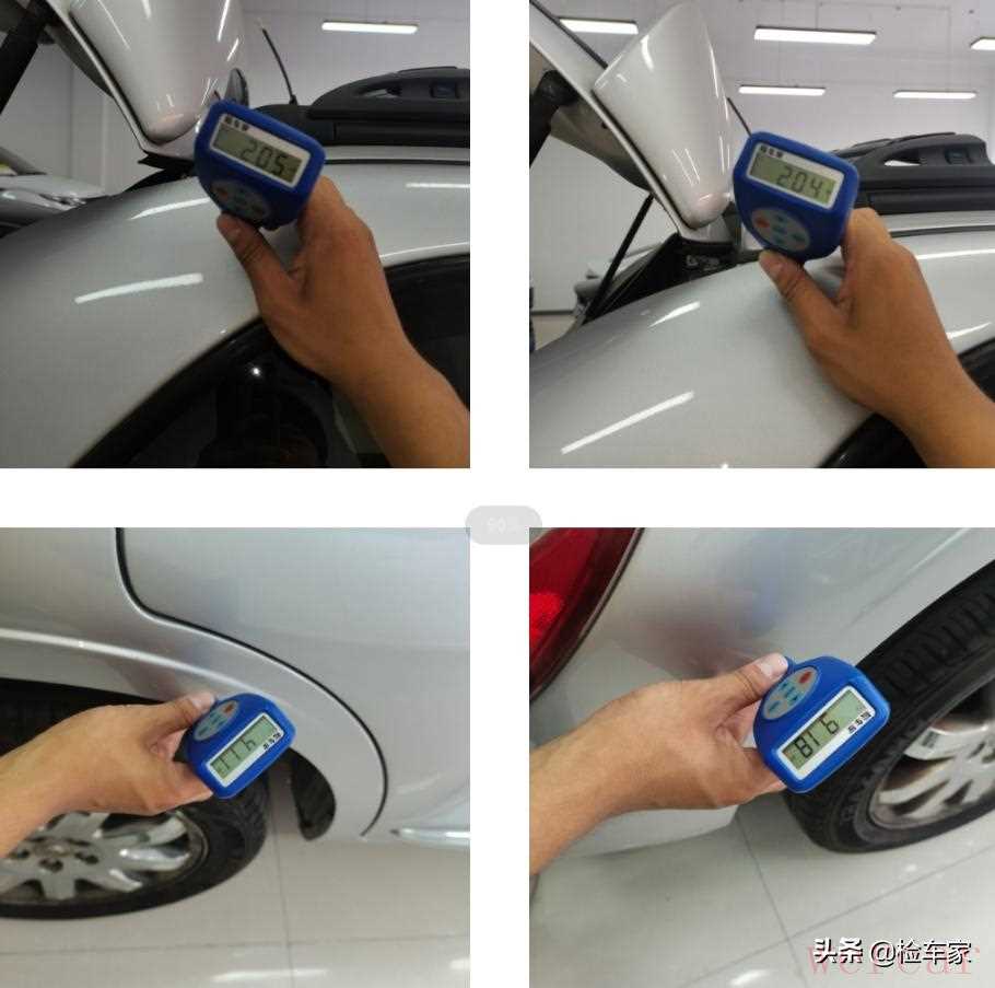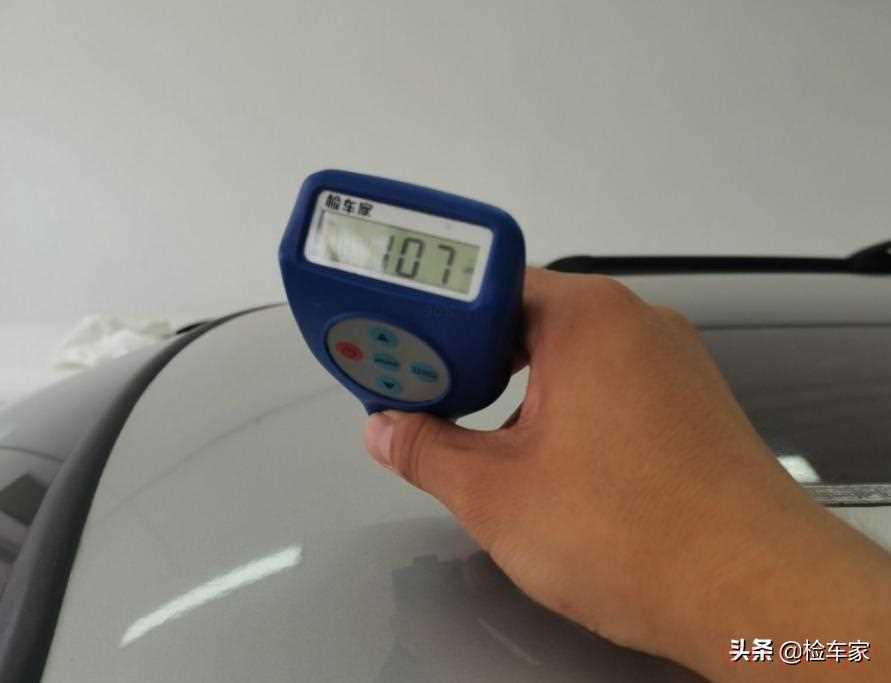 老规矩还是从车顶取一个该车的基准漆面数值,测了一圈发现大概在100um左右。这是一款2007年的车,已经过了14年了,车顶没有做漆还算保护得好,并没有全车做漆。但是从外观一看漆面比较老旧了,毕竟也开了14车了,很正常。漆面客户大哥也说了要求不高,重点看看事故、水泡、修发动机这种大问题。