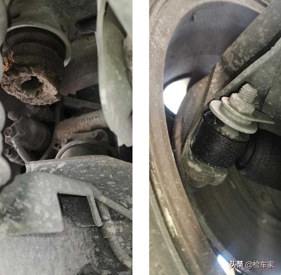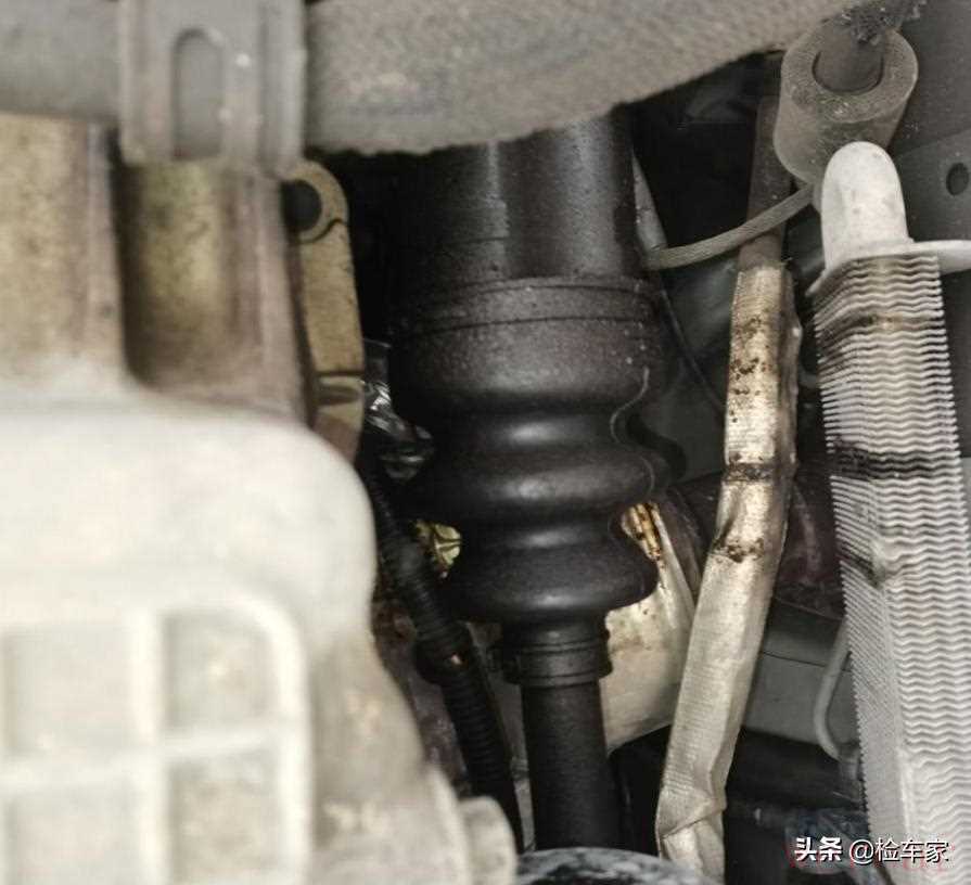 随后我仔细检查了悬挂的情况,看到右前半轴漏油有点厉害,这个时间久了油漏完会导致干磨。